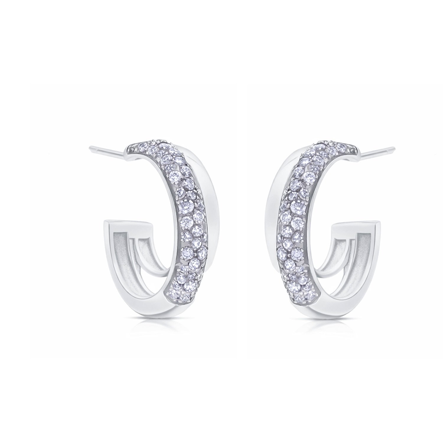 LAB Diamond Double Hoop Earrings Silver