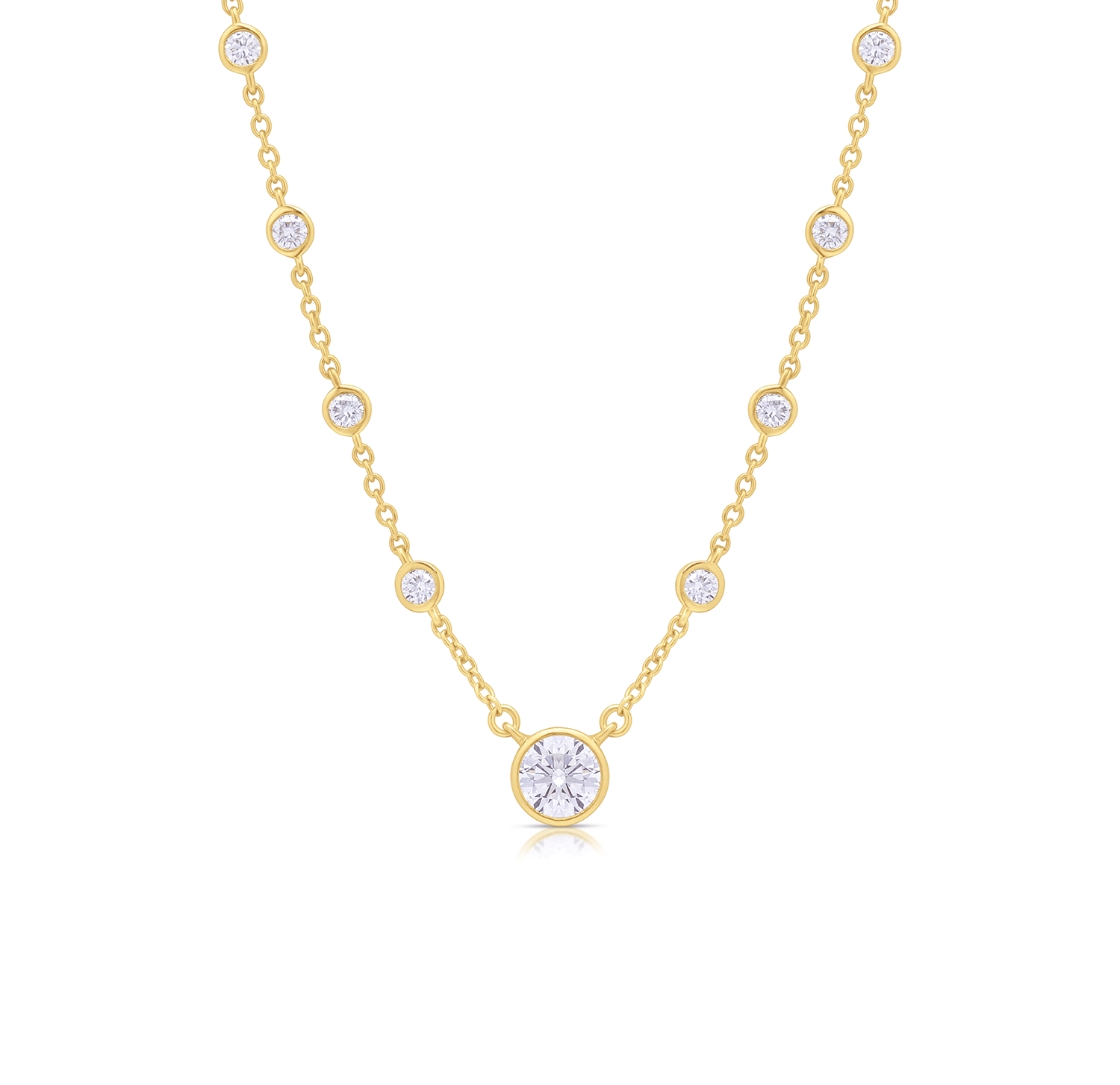 LAB Diamond Gold Plated Silver Necklace with Center LAB Round Diamond