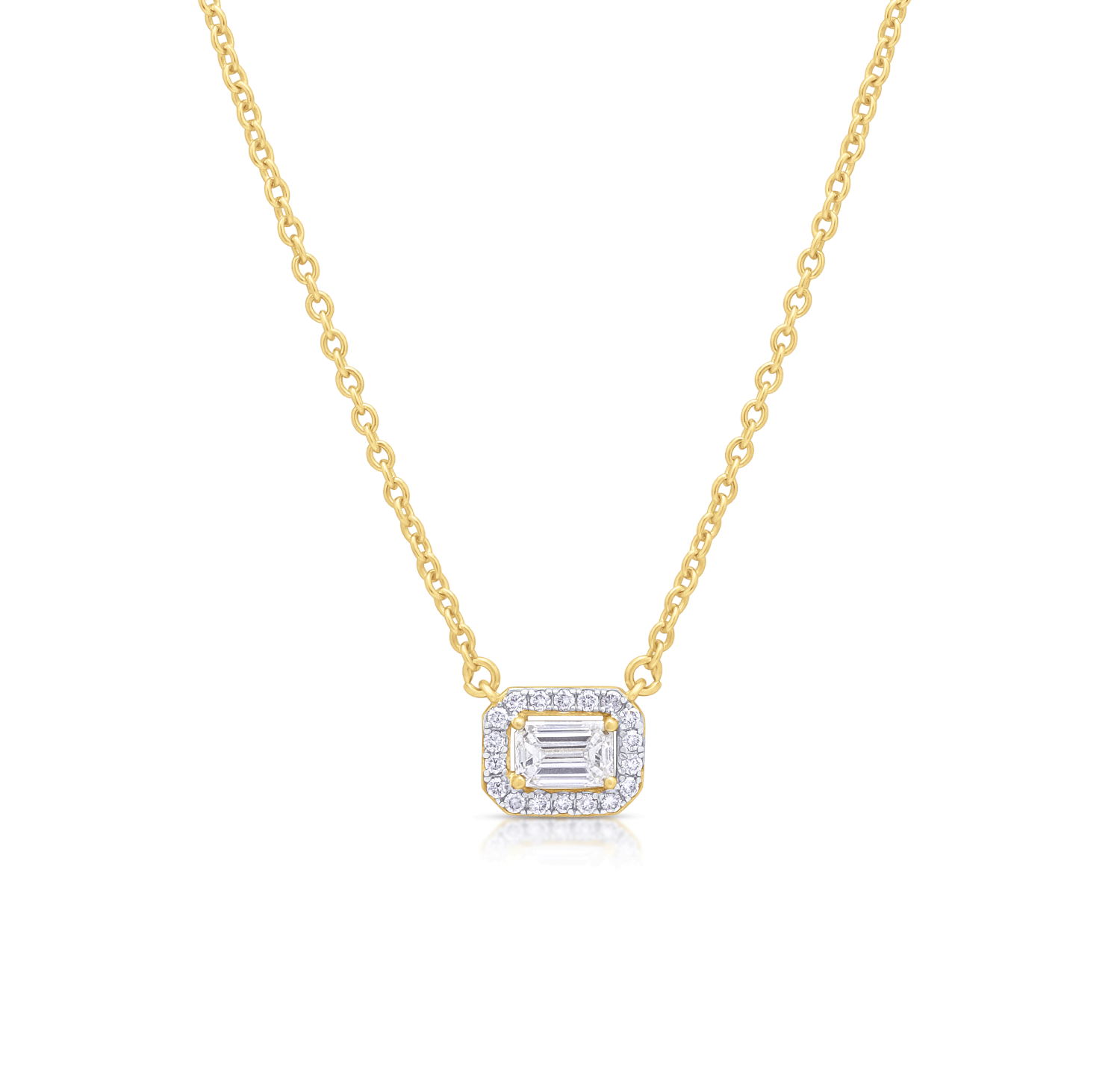 LAB Diamond Silver Necklace with Center Emerald Cut Diamond