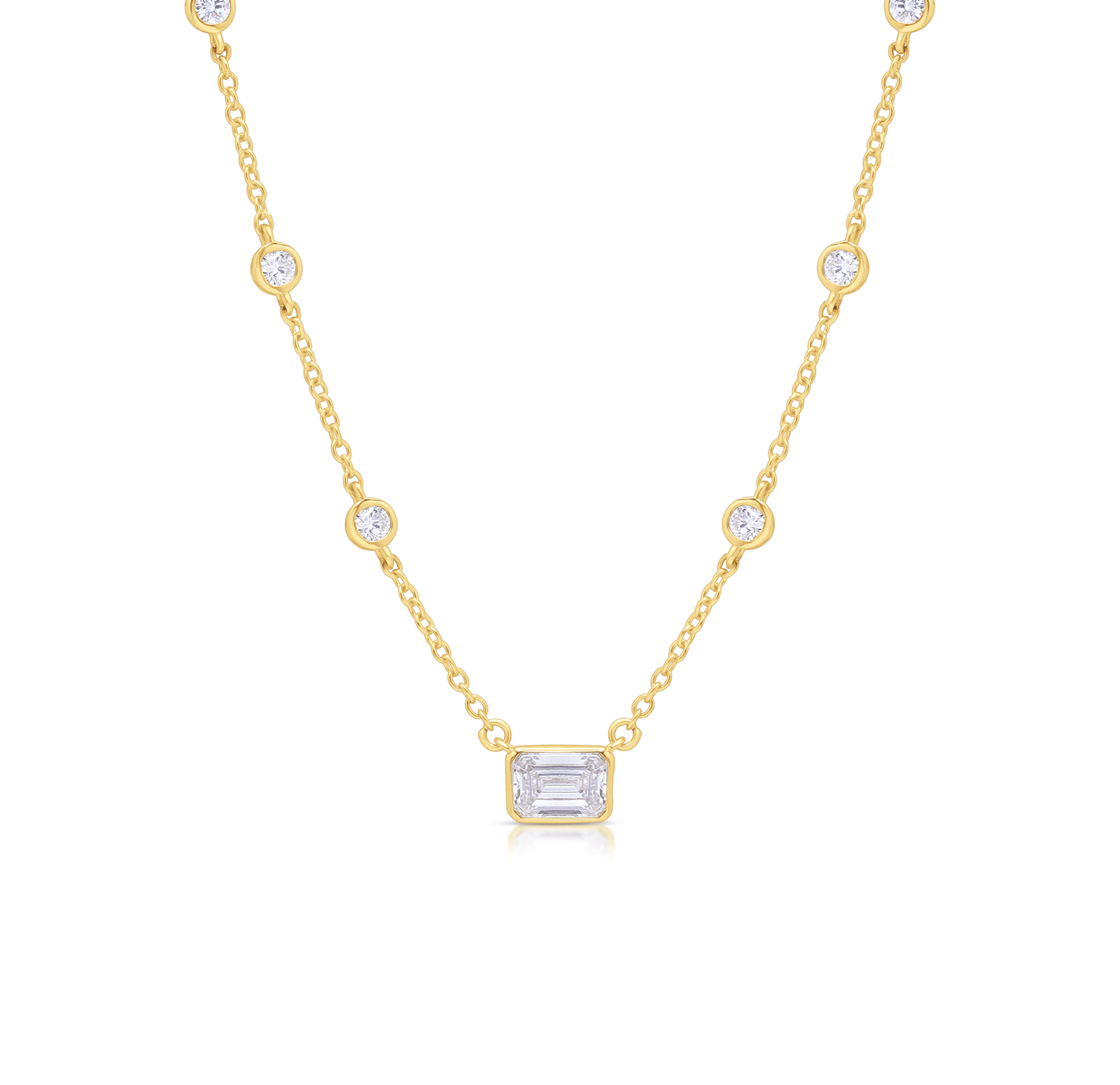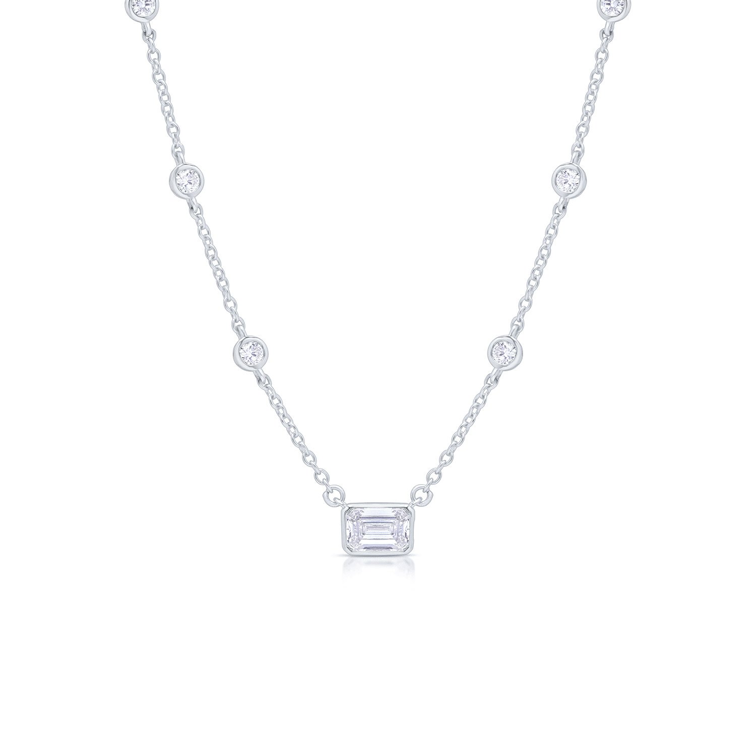 LAB Diamond Silver Necklace with LAB Emerald Cut Diamond Center