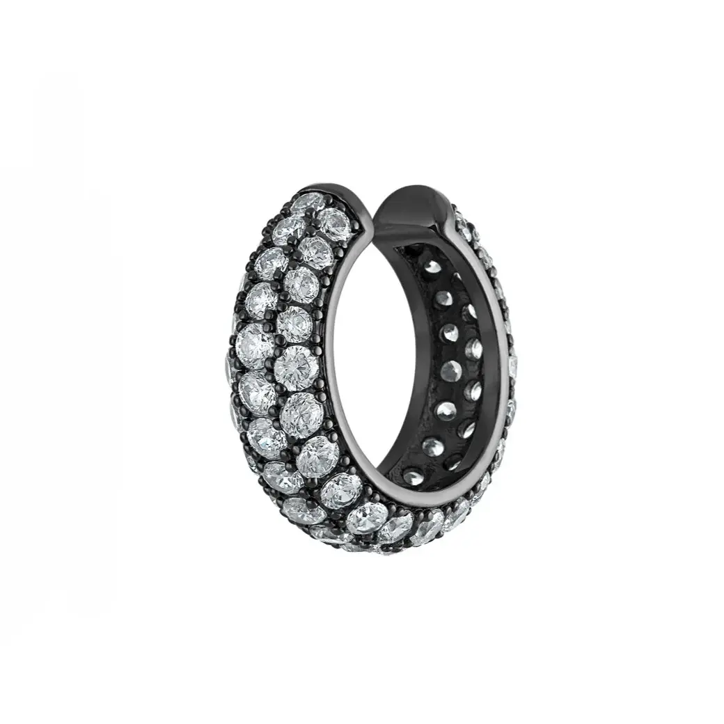 Unleash your daring side with our Pave Ear Cuff! The sleek black rhodium plating and sparkling pave crystals will create a bold and unique look for your ears. Elevate any earring style with this fun and edgy accessory.